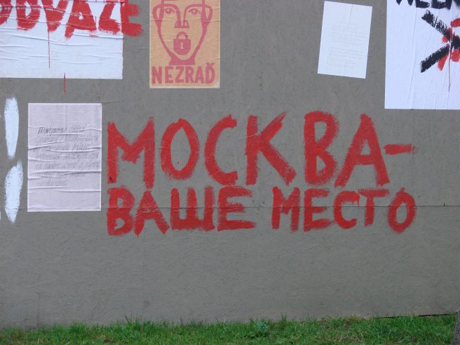 ამ ხალხს რომ ვუსმენ კი ეს წარწერა მახსენდება ხოლმე, რომელიც პრაღის გაზაფხულის ჩახშობის მერე გაჩნდა ქალაქში და დღემდე, დღემდე არის იქ სადაც უნდა იყოს: ქალაქის ცენტრში. ზუსტად, მოსკოვშია მათი ადგილი!